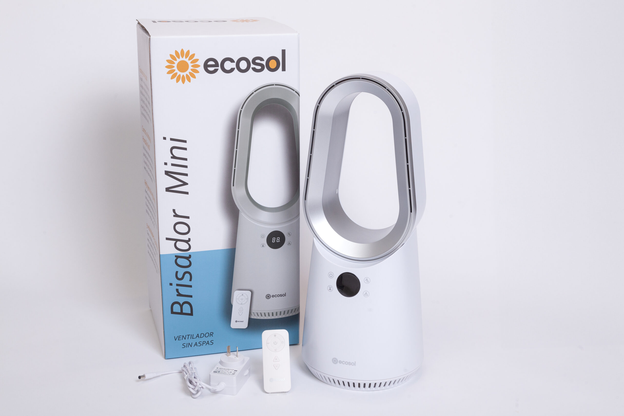 El Ventilador sin aspas MINI Ecosol es de bajo consumo y tiene un diseño innovador. Con solo 24 watts, es eficiente, económico y silencioso. Su filtro de nanoplata elimina bacterias y virus, mientras que la turmalina reduce alérgenos. Es tan seguro que incluso si tu mascota muerde el cable, no hay riesgo.